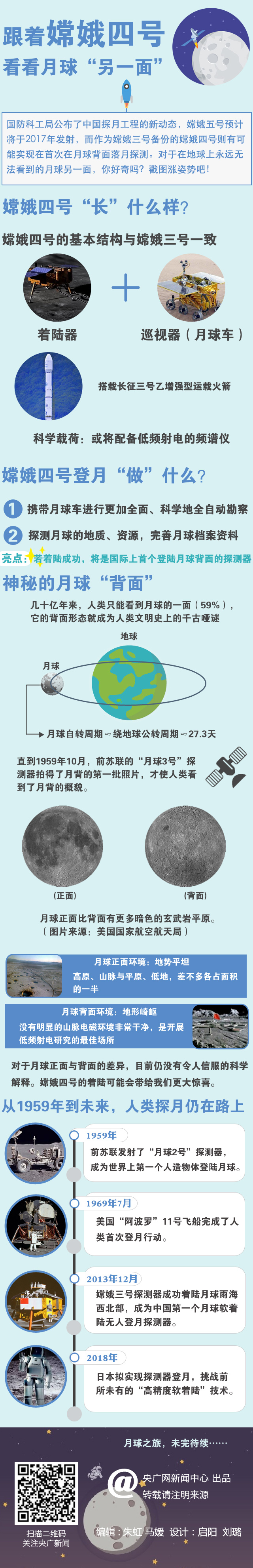 國防科工局公布了中國探月工程的新動(dòng)態(tài),嫦娥五號(hào)預(yù)計(jì)將于2017年發(fā)射,而作為嫦娥三號(hào)備份的嫦娥四號(hào)則有可能實(shí)現(xiàn)在首次在月球背面落月探測(cè)。對(duì)于在地球上永遠(yuǎn)無法看到的月球另一面,你好奇嗎?戳圖漲姿勢(shì)吧!