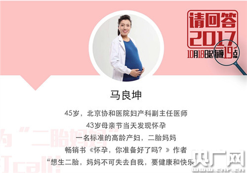 職場媽媽、“育有兩個兒子”曹議文;職場媽媽、“育有一對姐妹花”張瑩;“微商”全職媽媽、家有“好”字夏瑄;高齡產婦、婦產科副主任醫(yī)師馬良坤將做客直播間!