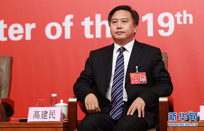 10月23日,十九大新聞中心舉辦集體采訪活動(dòng),主題為“打好生態(tài)環(huán)保攻堅(jiān)戰(zhàn)”。圖為河北省環(huán)保廳黨組書記、廳長(zhǎng)高建民。新華網(wǎng) 郝廣鵬攝