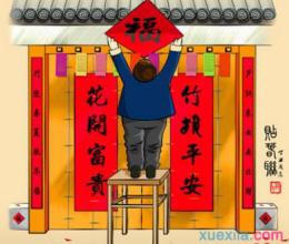 春聯(lián)又叫“門對兒”、“春帖”。有人說,春聯(lián)的前身跟門神一樣,是桃符。說古時(shí)候的人怕“年”,除了放鞭炮嚇唬這個(gè)“年”之外,還有一招,就是用桃木刻成人形掛在門框上,讓他當(dāng)保安——這就是門神啦——神荼、郁壘。