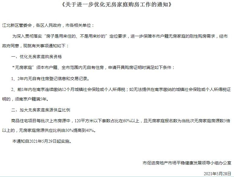 央廣網(wǎng)6月3日消息(記者 安垚)首批集中供地剛結(jié)束不久的南京,再出房地產(chǎn)調(diào)控新政。