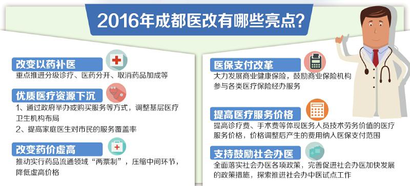 醫(yī)院檢查多、藥費(fèi)貴,是令百姓頭疼的問題。目前國(guó)家已確定四川等7省市為全國(guó)第二批綜合醫(yī)改試點(diǎn)省,成都也被確定為第四批公立醫(yī)院改革國(guó)家聯(lián)系試點(diǎn)城市。根據(jù)《工作安排》,成都將研究制定《成都市城市公立醫(yī)院綜合改革試點(diǎn)實(shí)施方案》,重點(diǎn)推進(jìn)實(shí)施分級(jí)診療、醫(yī)藥分開、取消藥品加成等措施,深化醫(yī)保支付方式改革,建立符合醫(yī)療行業(yè)特點(diǎn)的人事薪酬制度等。