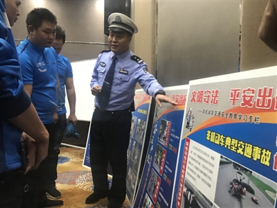 同一天,成都市交管三分局民警,對餓了么外賣平臺近百名外賣小哥分別從城市道路交通安全法規(guī),城市道路交通安全事故的處理,城市道路交通安全意識的培養(yǎng)及文明交通行為倡導等幾方面,給近百名送餐騎手和管理人員“漲姿勢”。