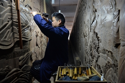 工匠師傅吳江權(quán)正在雕刻