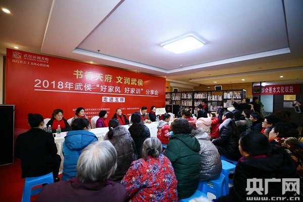 央廣網(wǎng)成都1月28日消息(記者韓民權)為踐行社會主義核心價值觀,使文化融入百姓生活。1月27日,由成都市武侯區(qū)圖書館主辦的“書香天府?文潤武侯‘好家風 好家訓’分享會”第一站走進成都武侯區(qū)玉林街道,將文化活動送到基層市民身邊。當天,成都民俗學家與市民代表們分享了自己的好家風故事,并將優(yōu)秀的家風家訓存入了“家風銀行”。