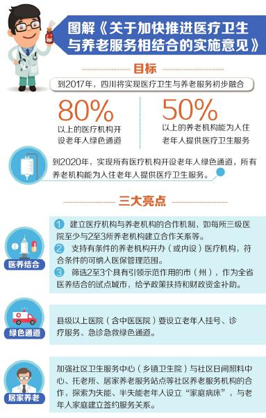 四川出臺(tái)《加快推進(jìn)醫(yī)療衛(wèi)生與養(yǎng)老服務(wù)相結(jié)合的實(shí)施意見》到2017年,80%以上醫(yī)療機(jī)構(gòu)開設(shè)老年人就醫(yī)綠色通道