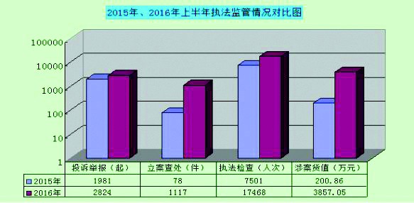 上半年,質(zhì)監(jiān)部門(mén)還加大了質(zhì)量違法案件查處力度。全省質(zhì)監(jiān)系統(tǒng)“12365”舉報(bào)投訴熱線共接聽(tīng)電話2824起,與去年同期相比,投訴舉報(bào)有所上升,投訴主要為電梯、頁(yè)巖磚、汽配及手機(jī)配件、加油機(jī)、小家電、珠寶玉器、農(nóng)資、服裝、金銀飾品等質(zhì)量以及高速公路計(jì)量等問(wèn)題。全省質(zhì)監(jiān)系統(tǒng)立案查處1117件,涉案貨值3857.05萬(wàn)元。