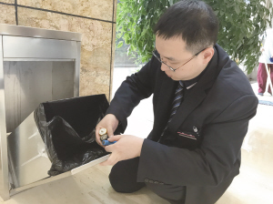 其實(shí),在今年4月之前,陳策對于垃圾分類還很陌生。在百揚(yáng)大廈成為成都垃圾分類試點(diǎn)樓宇后,他必須盡快熟悉“垃圾分類”的概念,包括標(biāo)識和流程。陳策馬上去買了相關(guān)的書籍,回家后,每天花3—4小時惡補(bǔ),“一周內(nèi)熟悉了垃圾分類的全部流程!辈贿^,熟悉垃圾分類知識只是他攻克的第一個難關(guān),要讓整幢大廈的人都行動起來,絕非易事。百揚(yáng)大廈約有90家客戶,1500多人,設(shè)有分類垃圾容器68個。每個人對垃圾分類的認(rèn)識程度不一。每隔兩天,陳策就會和同事們一起,挨家拜訪,宣傳垃圾分類。剛開始,很多人都不理解,覺得垃圾分類太麻煩,但時間一長,陳策還是明顯感到了一些變化,在大廈一樓,他展示了“有害垃圾”回收箱,里面已經(jīng)裝有不少廢棄的電池、熒光筆、墨盒等!皹怯罾锟蛻舻睦诸惲(xí)慣在慢慢養(yǎng)成。