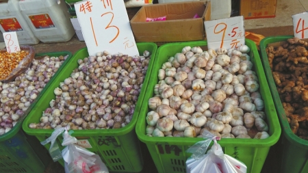 記者在其他菜市場發(fā)現(xiàn),10元一斤已是普通大蒜的最低零售價,而紫皮獨瓣蒜價格已經(jīng)漲到了13元一斤。在一家大型超市,記者發(fā)現(xiàn),普通大蒜價格為10.8元一斤,獨瓣蒜價格更是高達(dá)16元一斤。