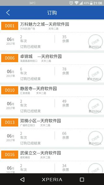在成都定制公交移動(dòng)客戶端中顯示的線路均有不少余票。