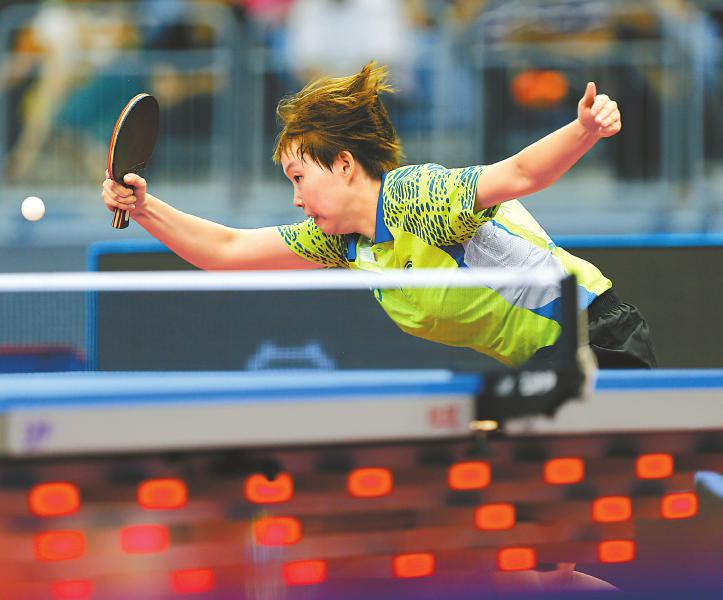 朱雨玲在全運會乒乓球女團決賽中。本報記者 尹鋼 攝