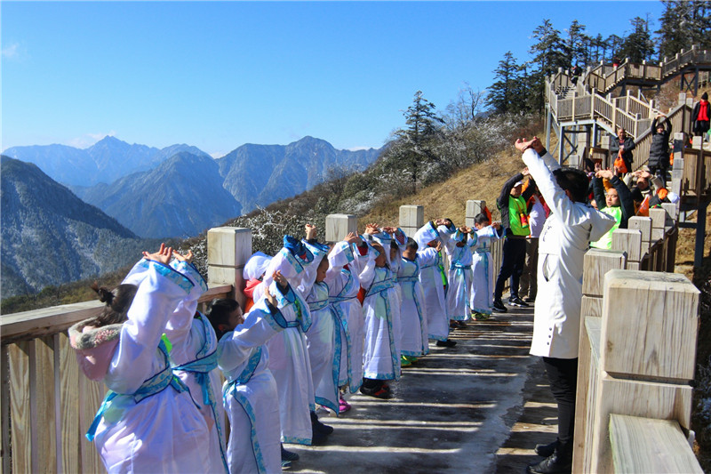 秋天的西嶺雪山是一個(gè)絕佳的戶外鍛煉場(chǎng)所,本次“西嶺森林大課堂”中,特別安排了一場(chǎng)獨(dú)特的“云海體育課”,在海拔三千余米的日月坪,面對(duì)云海、雪山,讓孩子們感受到鍛煉身體的樂(lè)趣,養(yǎng)成健康的生活習(xí)慣。