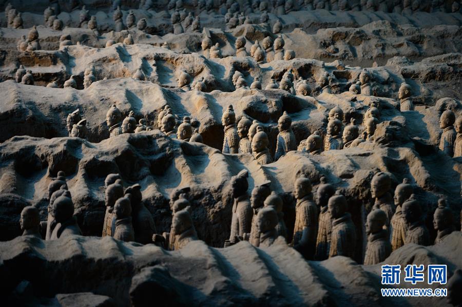 位于陜西省西安市臨潼區(qū)的秦兵馬俑坑(2016年10月27日攝)。秦兵馬俑坑發(fā)現(xiàn)于1974年,被譽(yù)為“世界第八大奇跡”“二十世紀(jì)考古史上的偉大發(fā)現(xiàn)之一”。