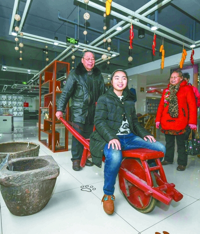 桂溪街道老住戶李顯光今年已經(jīng)72歲,說起桂溪幾十年的歷史變遷,他如數(shù)家珍。“當年這里叫桂溪鄉(xiāng),我推著雞公車到處賣柴火、賣米湯,一年鞋子要穿壞兩三雙,走的都是泥濘的路面,現(xiàn)在的桂溪由農(nóng)村變主城區(qū)了,出門就有公交車,路面寬闊,街道干凈整潔,一雙鞋子幾年都穿不壞。我家里住上了寬敞的大樓房,日子與過去相比那是好了不知多少倍!贝舜喂鹣值阑I建社區(qū)博物館,李顯光捐出8件過去使用過的生活物品!澳禽v雞公車陪伴了我60年,把它放在博物館里,讓年輕人看看當年的桂溪人的生活,也是一種傳承吧。”