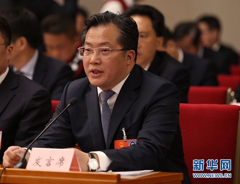 全國人大代表,四川省樂山市委副書記、市長張彤在發(fā)言。新華網(wǎng)曹鵬攝