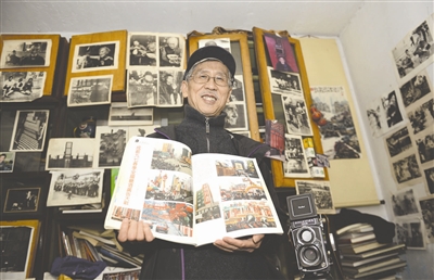 每天上午,他都會(huì)掛著一個(gè)用了15年的破洞帆布相機(jī)包,裝兩臺(tái)徠卡相機(jī),行走在成都的大街小巷!拔遗某啥寂牧40年。”王曉莊把家里的一間房改成工作室,膠卷裝滿(mǎn)了三個(gè)水桶,底片有30萬(wàn)張,手沖的照片粘滿(mǎn)了墻壁和書(shū)柜,匯集著各種成都人的生活。