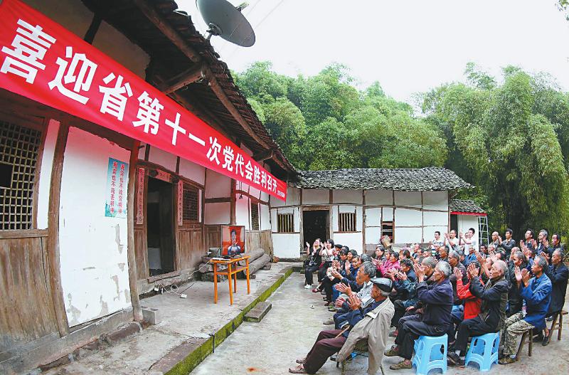 5月24日上午,阿壩州黑水縣麻窩鄉(xiāng)木日窩村,村支部書記羅讓和全村8名黨員通過電視收看省第十一次黨代會(huì)開幕盛況。