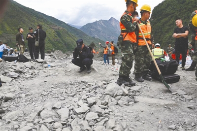 面對親人的遇難和失聯(lián),作為阿壩縣特警一大隊的一名救援特警,高猛選擇了強忍悲痛,忙碌在救災一線。從24日下午抵達現(xiàn)場后,他一直堅守在救援崗位上!氨U暇仍褪菍τH人最好的祈禱!彼f。