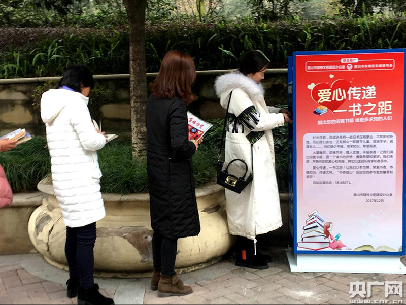 央廣網(wǎng)成都12月27日消息(記者劉濤、通訊員王永強)“我覺得這是件很有意義的事,通過捐獻閑置的書籍就能夠幫助別人,我內(nèi)心感到很高興。希望有更多的市民朋友參與到這個活動中來,共同傳遞愛心,把我們眉山建設(shè)得更加美麗和溫暖!27日,在四川眉山中心城區(qū)一小區(qū)內(nèi),小區(qū)居民黃女士將家中看過的閑置書籍投入“愛心書籍捐贈箱”時高興的說到。