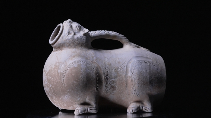 一到現(xiàn)場,記者就被西晉至南朝時期的一件青瓷虎子吸引了,這件成都地區(qū)出土的文物分外可愛,就像一只趴著的小老虎,昂著腦袋,張嘴大吼,背上還有一個提梁。據(jù)了解,這件虎子出土于漢晉南北朝時期墓葬中,這類瓷器產(chǎn)品在長江中下游較為常見,在成都平原出土則較為少見,是一件結(jié)合了實用性與藝術(shù)性的早期青瓷佳品。