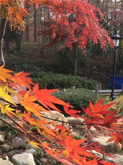 太平角公園紅黃相間的樹葉。(傅學軍 攝影報道)