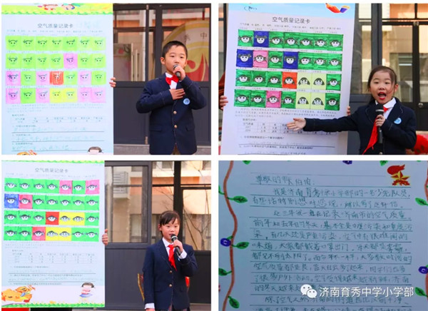 不同年級(jí)代表,從不同角度介紹自己所繪的《空氣質(zhì)量記錄卡》