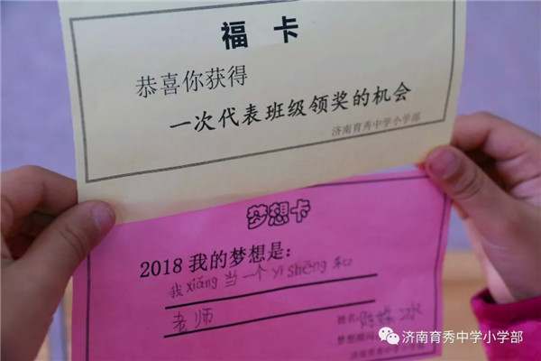 打開(kāi)紅包,里面有一張"夢(mèng)想卡"和一張幸運(yùn)"福卡"