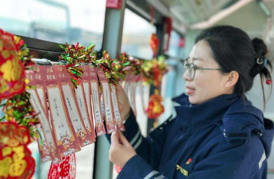 “元宵燈謎主題車廂”,將流動(dòng)的公交車廂化作移動(dòng)的節(jié)慶會場,與廣大乘客一起共迎佳節(jié)。
