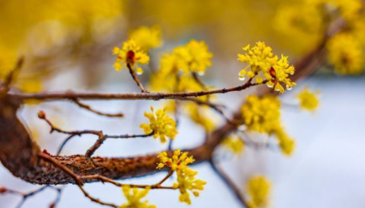 一場春雪悄然降臨濟(jì)南,位于泉城公園的山茱萸林,邂逅了一場難得的“雪與花”的詩意相逢。