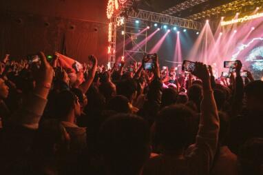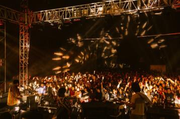 痛仰、海龜先生、馬賽克、鳥撞、發(fā)光曲線……一支支樂(lè)迷們耳熟能詳?shù)臉?lè)隊(duì)在最熱烈的歡呼中逐一登臺(tái)演奏。《公路之歌》《飛天》《瑪卡瑞納》、一首首膾炙人口的歌曲,更是引發(fā)了全體合唱,樂(lè)迷們用閃光燈點(diǎn)燃熱愛(ài)的星光,投射于青島純生舞臺(tái)之上,碰撞出燦爛的花火。