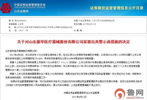 4月11日,山東證監(jiān)局發(fā)布《關(guān)于對(duì)山東新華醫(yī)療器械股份有限公司采取出具警示函措施的決定》《關(guān)于對(duì)趙毅新采取監(jiān)管談話措施的決定》《關(guān)于對(duì)許尚峰采取監(jiān)管談話措施的決定》和《關(guān)于對(duì)李財(cái)祥采取監(jiān)管談話措施的決定》。