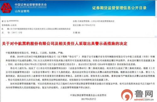 4月27日,山東證監(jiān)局發(fā)布《關(guān)于對(duì)中航黑豹股份有限公司及相關(guān)責(zé)任人采取出具警示函措施的決定》。