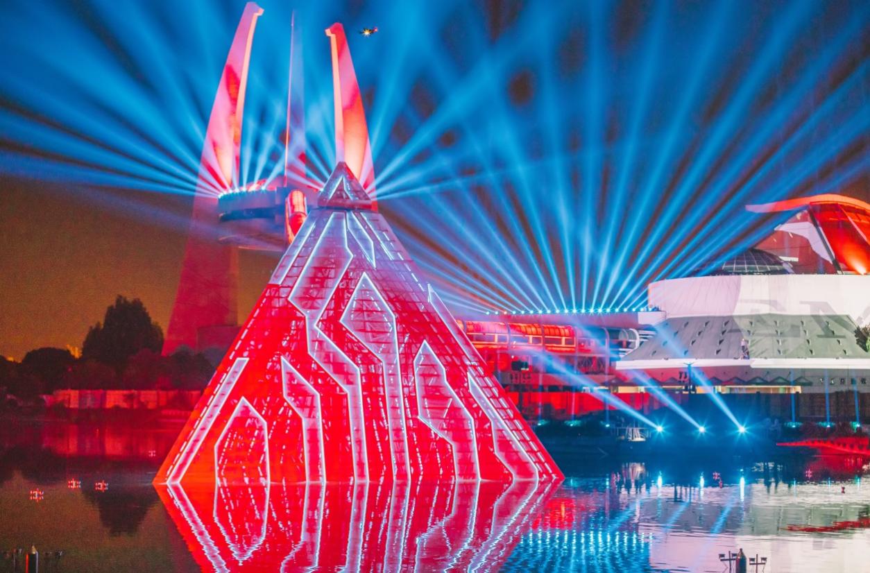 在編創(chuàng)方面,D秀團隊吸納了國內優(yōu)質的影視、動畫制作團隊,對每一個畫面,每一個環(huán)節(jié)進行反復推敲和打磨,從飛流直下的瀑布,到隕石墜落的路徑角度,從3Dmapping的宇宙飛船到無人機的完美銜接,哪怕是短短幾秒,均是力求完美,實現了影像畫面在多種媒介、多維度空間的生動呈現。不僅如此,演出中的配樂更是經過團隊的精心考量,讓觀眾們的視覺震撼與心緒澎湃能夠同頻共振,深刻體會整場大秀的內涵與意義。
