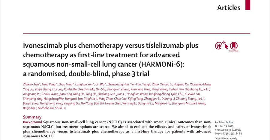 上海醫(yī)療團隊攻破肺鱗癌治療瓶頸 “雙抗”方案大幅延長患者生存期