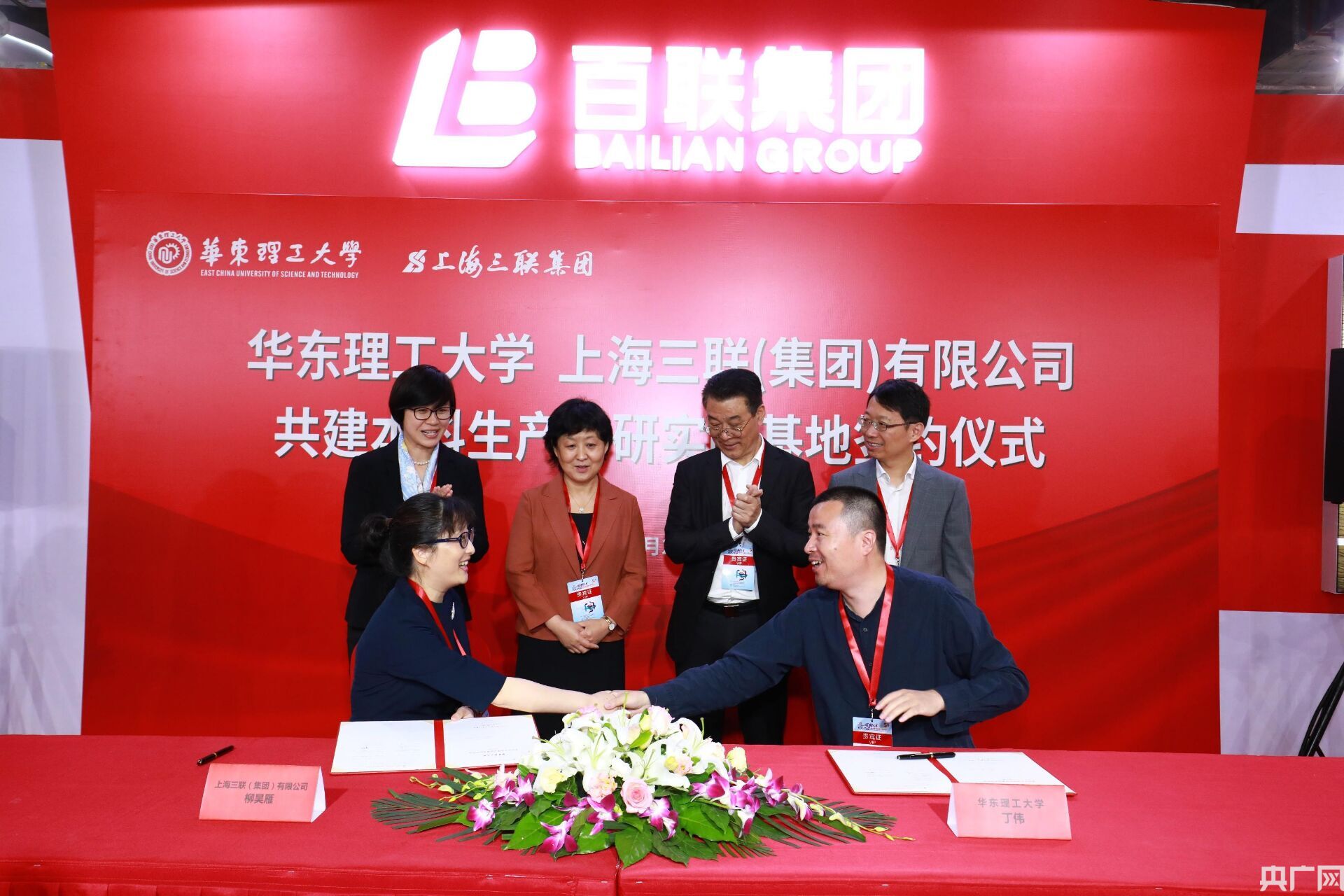 隨后,在百聯(lián)展臺簽約儀式上,藝術(shù)設計與傳媒學院院長丁偉代表學院與上海三聯(lián)(集團)有限公司總經(jīng)理柳昊雁簽訂戰(zhàn)略合作協(xié)議,王慧鋒、浦靜波,以及藝術(shù)設計與傳媒學院黨委書記趙菡、百聯(lián)集團有限公司經(jīng)濟運營部執(zhí)行總監(jiān)史小龍等見證。