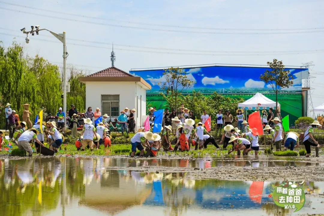 按照老農(nóng)示范的株距行距,左手握住秧苗、右手分苗插秧……今日芒種,一大早,36組家庭相聚外岡鎮(zhèn),一同開展“帶著爸爸去種田”第八季親子體驗(yàn)活動(dòng)。