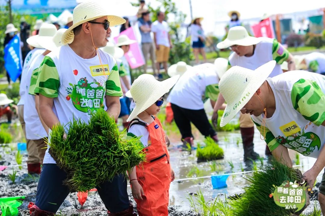 隨后,許兵一聲令下,家長(zhǎng)和孩子們紛紛穿上裝備下田插秧,雖然動(dòng)作稍顯笨拙和童稚,但依然難掩高昂的勞動(dòng)熱情!爸挥凶约簞(dòng)手了,吃苦了,才能真正明白糧食的來之不易,惜糧愛糧的效果比我說教一百次都來得管用!睆难硖锷蟻淼年愳跐M身泥水,他提著筒靴,感慨地說,這已是他們?nèi)业谌螀⒓釉摶顒?dòng),三年間孩子從“剩飯”到“光盤”的變化讓他甚感欣慰。