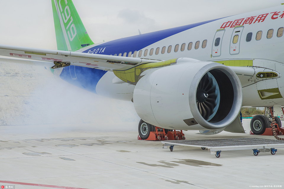 圖為12月28日,中國(guó)第一架C919大型客機(jī)進(jìn)行低速滑跑測(cè)試,此次測(cè)試是為今后的順利首飛做鋪墊。