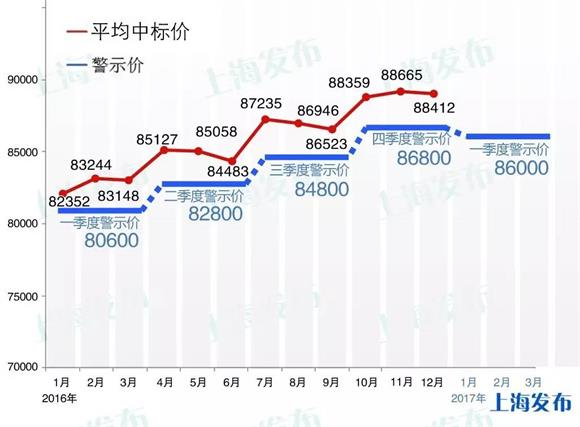 此外,去年12月車牌最低成交價88300元,平均成交價88412元,中標率5.6%。