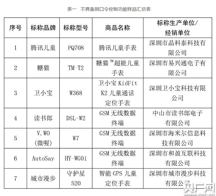 本次試驗對20塊智能手表的信息安全進(jìn)行了測試,結(jié)果顯示,7塊兒童智能手表不具備弱口令控制的功能,即允許用戶使用諸如123456的簡單密碼等(詳見表一)。