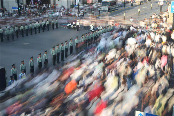 連續(xù)幾年擔(dān)負(fù)國(guó)慶安保執(zhí)勤任務(wù),對(duì)外灘區(qū)域的大客流已司空見(jiàn)慣了,但今年的人流量明顯早于和多于去年,當(dāng)潮水般的人群向執(zhí)勤區(qū)域涌來(lái)時(shí),我腦海里唯一想到的就是一定要組織指揮好部隊(duì),決不能有半點(diǎn)的疏忽,確保現(xiàn)場(chǎng)秩序和游客安全。