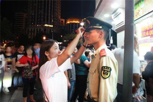 圖說(shuō):候衛(wèi)杰女友到南京路看望正在執(zhí)勤的男友。