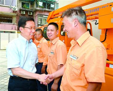 持續(xù)高溫,熱浪襲人。市委副書記、市長應(yīng)勇一行首先來到黃浦路吉公司淮海中路清道班,該班組承擔(dān)淮海中路、茂名南路和龍門路的道路日常保潔任務(wù),曾多次榮獲“上海市模范集體”等榮譽(yù)稱號。應(yīng)勇與環(huán)衛(wèi)工人們一一握手,關(guān)心詢問高溫天的作息安排,并對大家說:“城市的環(huán)境衛(wèi)生離不開你們的辛勤付出,感謝你們,也向全市環(huán)衛(wèi)工人表示慰問!”市領(lǐng)導(dǎo)特別關(guān)心環(huán)衛(wèi)工人的休息條件,市綠化市容局相關(guān)負(fù)責(zé)人說,在市總工會等支持下,很多單位都主動為環(huán)衛(wèi)工人提供休息場所,目前全市已有3500多個(gè)“愛心接力站”。