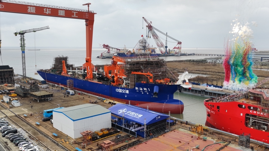 國內(nèi)首艘“上海造”超大型智能挖泥船下水。