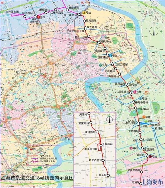18號線一期工程自長江南路站至航頭站,全長36.8公里,車站26座。目前已開工18座車站。
