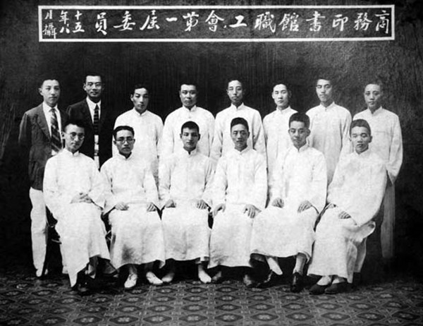 商務(wù)印書館發(fā)行所職工會第一屆執(zhí)行委員會委員合影。前排左三為陳云