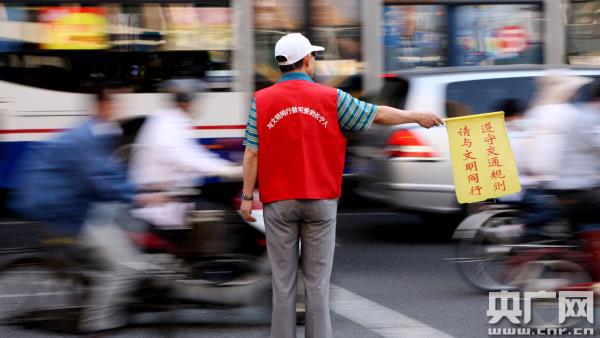 上海市徐匯區(qū)天平街道退休職工劉大爺每天早晨7點半到8點半之間都會在徐家匯商圈的重要路口執(zhí)勤。每天都有150余名志愿者出現(xiàn)在徐匯的40個主要交通路口,協(xié)助交警做好交通文明引導。徐匯區(qū)充分發(fā)動社會力量,爭創(chuàng)全國文明城區(qū)。