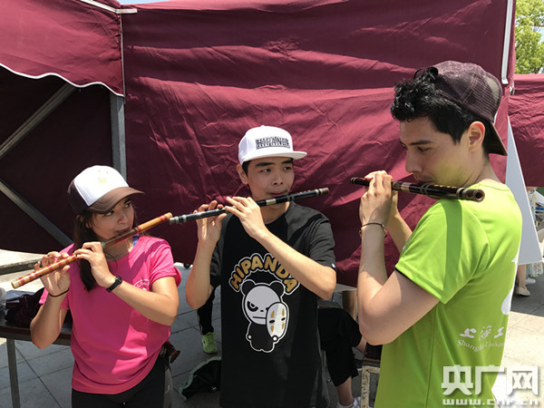 在競渡之余,作為承辦單位的華東理工大學(xué)為前來參加和觀摩比賽的外國留學(xué)生準備了一道文化大餐:穿著漢服彈古琴,品著粽子聽京劇……在隊員訓(xùn)練和休整期間,該校學(xué)生社團“八仙過海、各顯神通”,向世界各地的留學(xué)生展示了琴藝、插花、漢服、書法、京劇等國粹,為外國留學(xué)生體驗中國的傳統(tǒng)文化提供了便利。正在手繪京劇臉譜的巴基斯坦留學(xué)生王凱之告訴記者,今天是自己初次接觸京劇,立刻就對這一“美麗的”中國傳統(tǒng)文化產(chǎn)生了濃厚興趣,并表示回校后一定會對其進行具體了解。