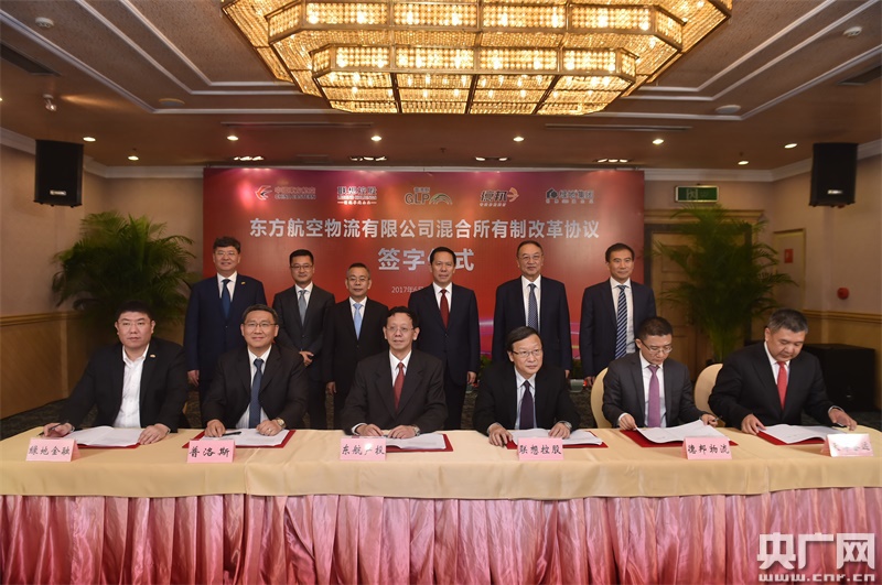 央廣網(wǎng)上海6月19日消息(記者吳善陽(yáng))中國(guó)東方航空集團(tuán)公司旗下東方航空物流有限公司開(kāi)展國(guó)家民航領(lǐng)域混合所有制改革試點(diǎn)取得重大成果。今天,東航集團(tuán)與聯(lián)想控股股份有限公司、普洛斯投資(上海)有限公司、德邦物流股份有限公司、綠地金融投資控股集團(tuán)有限公司等四家投資者,以及東航物流核心員工持股層代表,在上海正式簽署增資協(xié)議、股東協(xié)議和公司章程。這標(biāo)志著國(guó)家首批推進(jìn)的“七大領(lǐng)域”混合所有制改革試點(diǎn)在民航領(lǐng)域?qū)崿F(xiàn)“落地”;標(biāo)志著東航集團(tuán)主動(dòng)適應(yīng)經(jīng)濟(jì)發(fā)展新常態(tài),進(jìn)一步做“優(yōu)”做“活”國(guó)有企業(yè),探索混合所有制改革取得實(shí)質(zhì)性成效;標(biāo)志著東航集團(tuán)、聯(lián)想控股、普洛斯、德邦、綠地和員工持股層所代表的各種所有制資本,緊密融合、共贏發(fā)展、共同打造中國(guó)民航領(lǐng)域混合所有制改革的“第一樣本”。