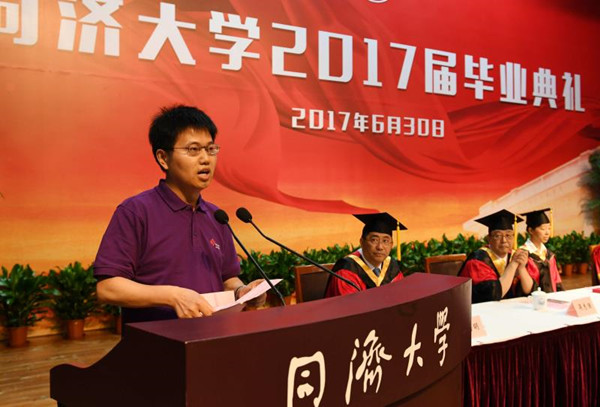 畢業(yè)生發(fā)言代表之一、土木工程學(xué)院結(jié)構(gòu)工程專業(yè)博士占冠元,在畢業(yè)之際毅然決然地作出了一個(gè)令許多人不解的選擇:遠(yuǎn)赴西藏日喀則,支援西部建設(shè)。出身貧寒,但自小就自強(qiáng)不息、一心服務(wù)社會(huì),占冠元深深感恩同濟(jì)所給予的一切,他說,無論身在何處,一定要牢記同濟(jì)人的使命與責(zé)任,傳承同濟(jì)精神,做一個(gè)名副其實(shí)的同濟(jì)人。
